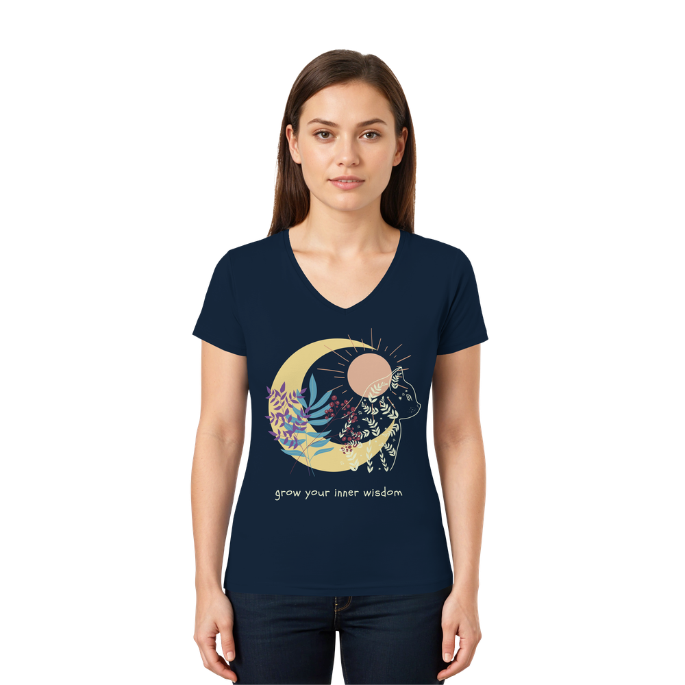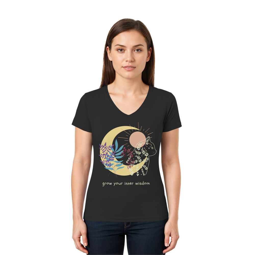 Katzen Shirt Damen spirituell – Grow Your Inner Wisdom V-Neck