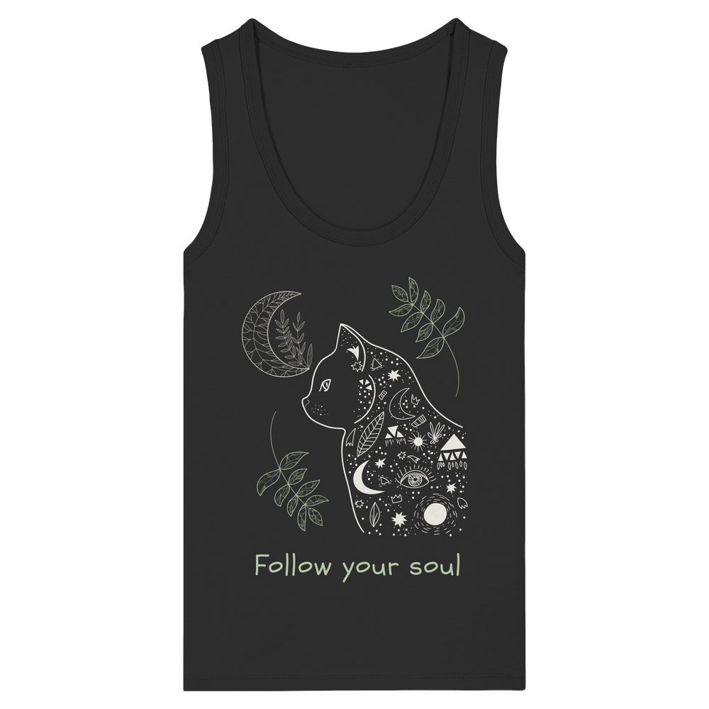 Das Katzen Tank Top Damen spirituell „Follow Your Soul“ ist genau für die Tage gemacht, an denen du keine Lust auf Stress, Drama oder unnötige Menschen hast – sondern einfach nur du selbst sein willst. Vielleicht mit Katze. Vielleicht mit Yoga. Vielleicht einfach nur mit Kaffee und Ruhe.