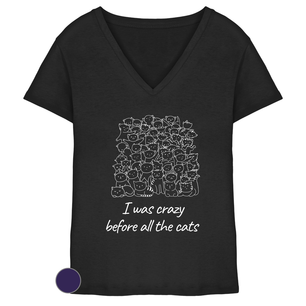 Katzen V-Ausschnitt T-Shirt Damen „all the cats“